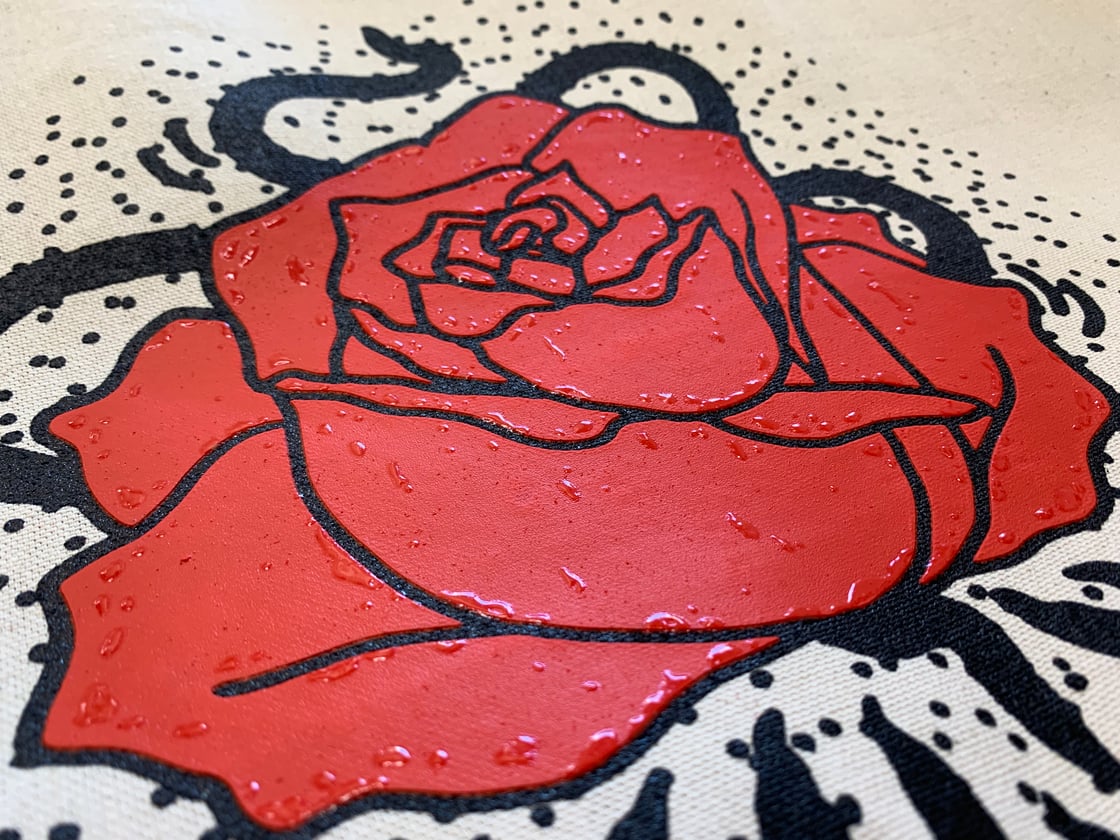 Textured rose print with glazed water drip details